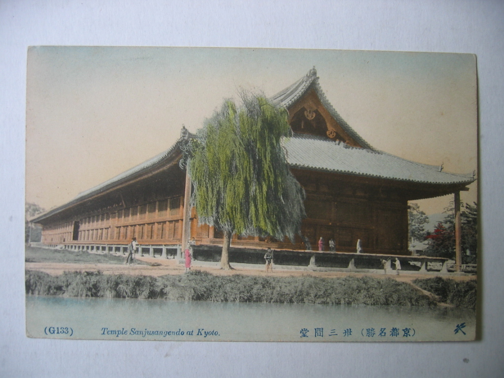 京都名勝二三間堂手彩色絵葉書