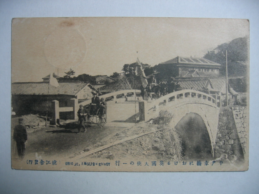 長崎平戸幸橋における英国大使の一行絵葉書