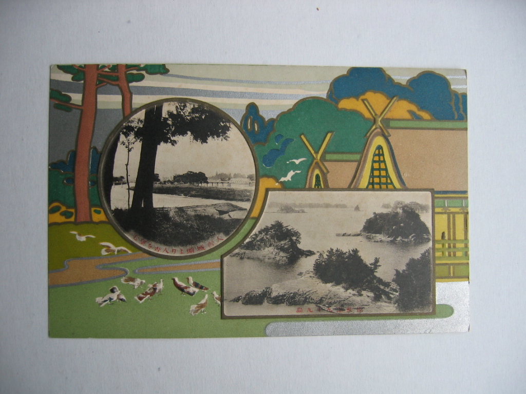 佐世保九十九島と人吉城頭より人吉を望む絵葉書