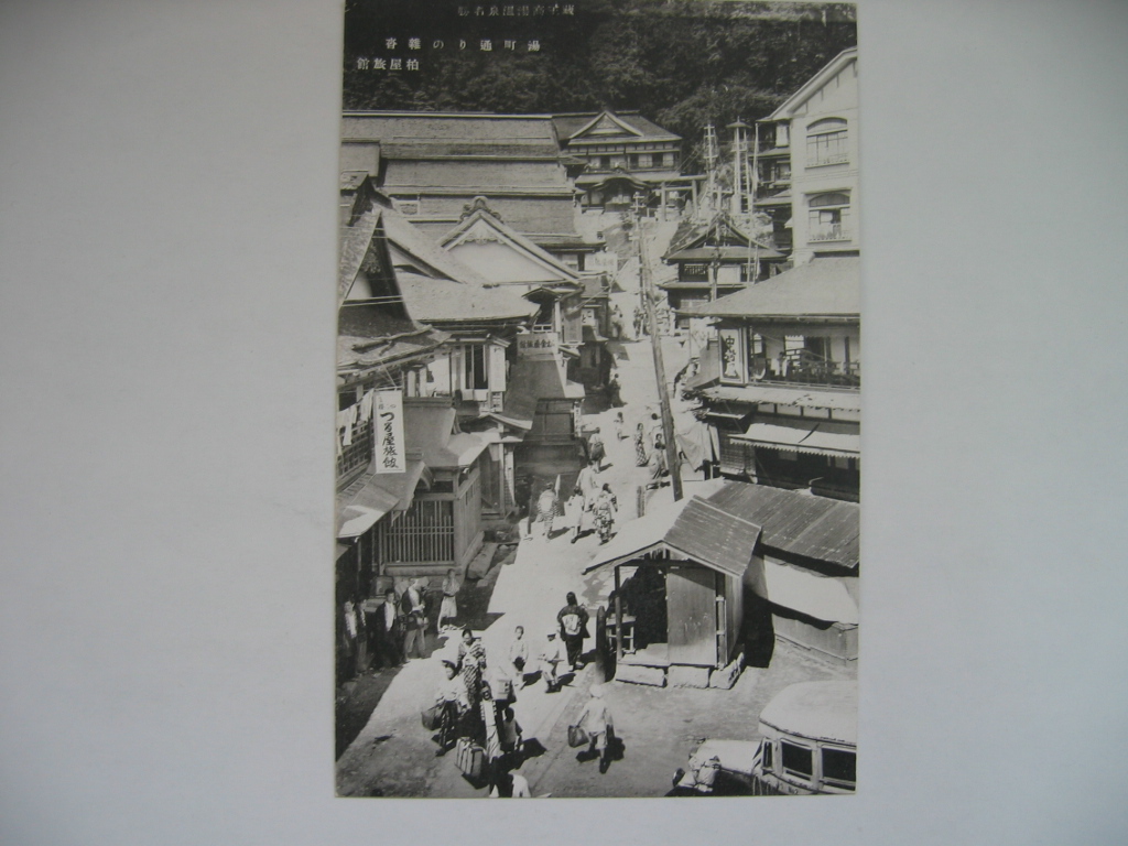 蔵王高湯温泉湯町通りの雑沓柏屋旅館絵葉書
