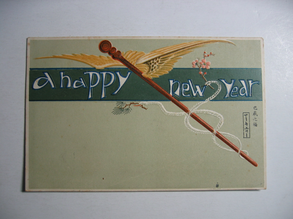 羽根が生えた杖年賀イラスト絵葉書