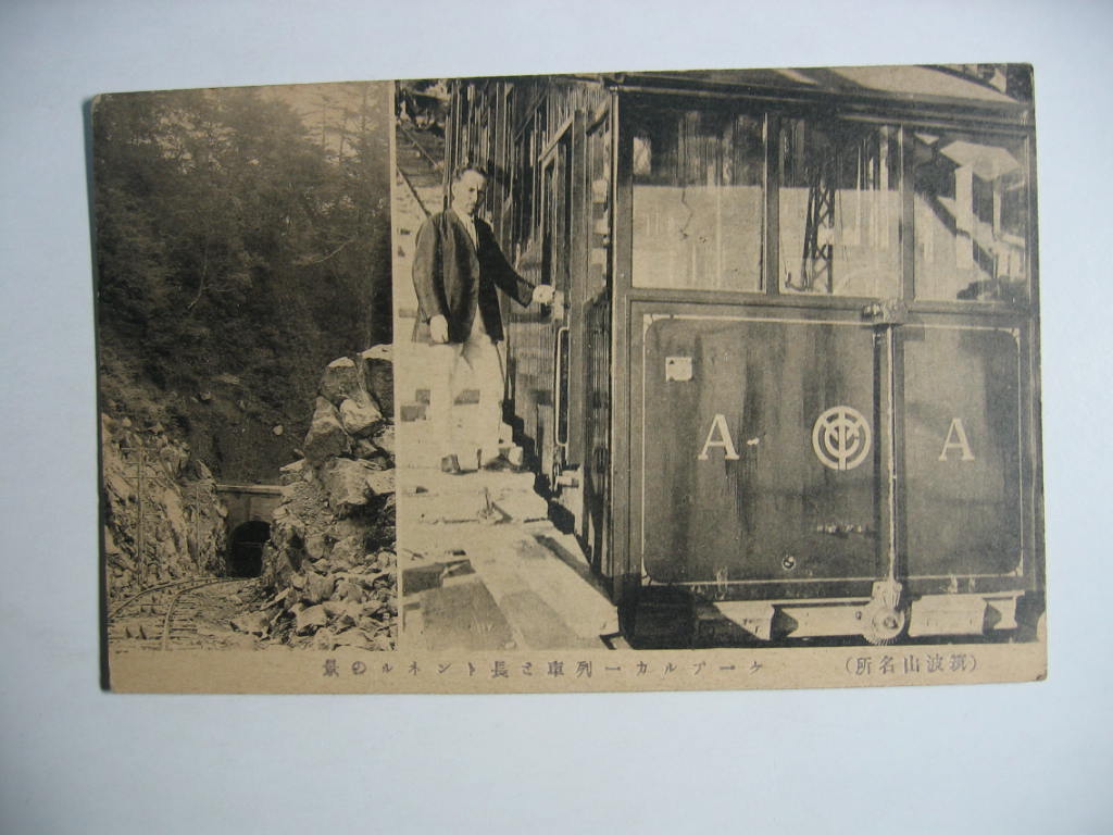 筑波山名所ケーブルカー列車と長トンネルの景絵葉書