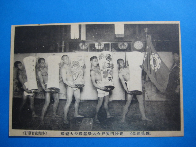 越後浦佐毘沙門天押合大祭献燈の大蝋燭絵葉書