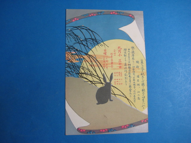 秋季皇霊祭・兎絵葉書 中部鉄道管理局発行年中行事9月