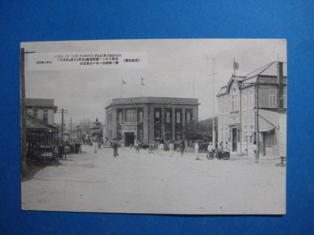 朝鮮元山名勝桟橋入口ヨリ国際運輸・朝郵・内通・会議所を経テ郵便局ニ至ル主要道路絵葉書