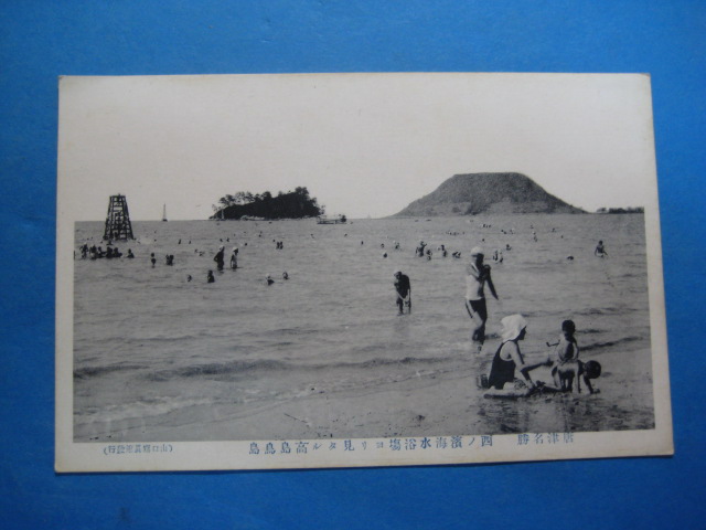 唐津名勝西の濱海水浴場ヨリ見タル高島鳥島絵葉書