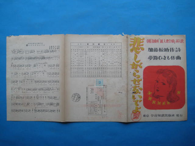 朝日映画「麗人歌合戦」挿入歌悲しがらせないでよ 加藤椋助作詩