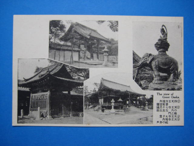 四天王寺境内普賢菩薩・天王寺七不思議の内左甚五郎猫之門・天王寺太子堂・天王寺境内蛇の井戸絵葉書