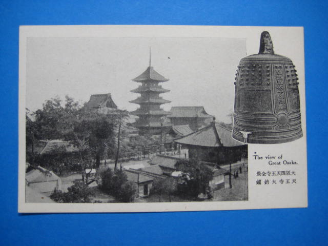 大阪四天王寺全景・天王寺大釣鐘絵葉書