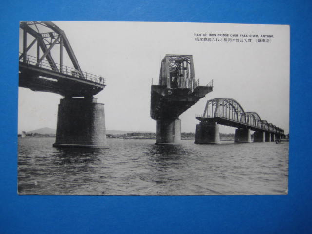 安東県嘗ては暫々開橋された鴨緑江橋絵葉書