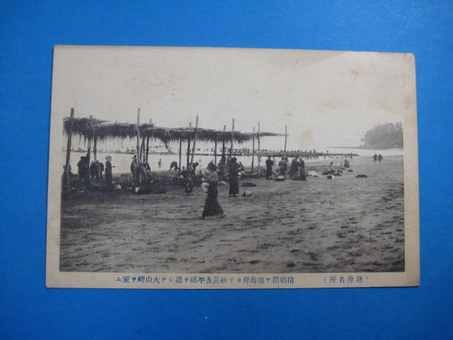 薩摩名所指宿摺ヶ濱海岸より砂蒸及平磯を通して大山岬を望む絵葉書