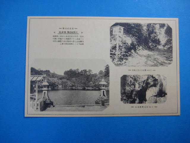 萩史蹟名勝明神池と笠山山上旧噴火口と笠山々麓夏尚ほ寒き洞穴絵葉書