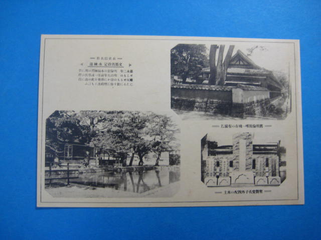 萩史蹟名勝水練池と有備館と聖賢堂孔子外四配の木主絵葉書