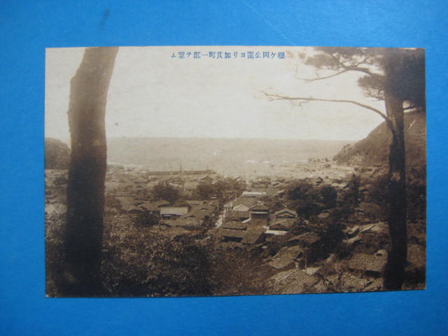 櫻ヶ岡公園より加茂町一部を望む絵葉書 山形県加茂