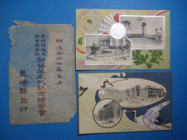 明治44年長崎県庁及県会議事院新築落成式記念絵葉書2枚