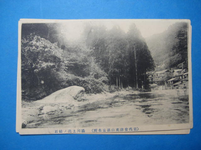福島県岩代会津東山温泉名所湯川上流の蛙石絵葉書