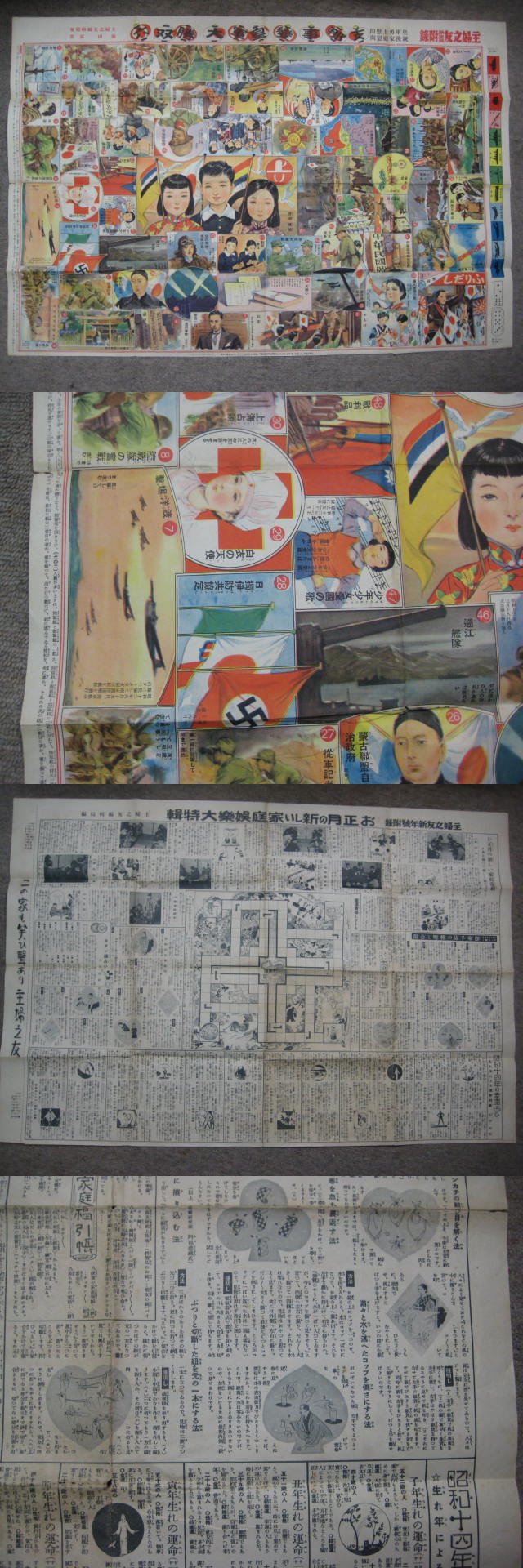 63×94糎 ピン穴有 切れ1糎 折れ目角小穴 嶺田弘画 主婦之友編集局案 主婦之友新年号附録 HP画像有 昭14年