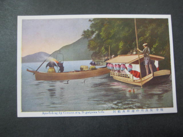 岐阜長良川の遊船及鵜飼絵葉書