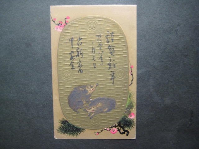 猪年賀絵葉書エンボス 明治44.1.1