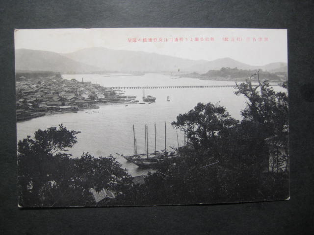 唐津名所舞鶴公園より松浦川口及松浦橋の遠望絵葉書