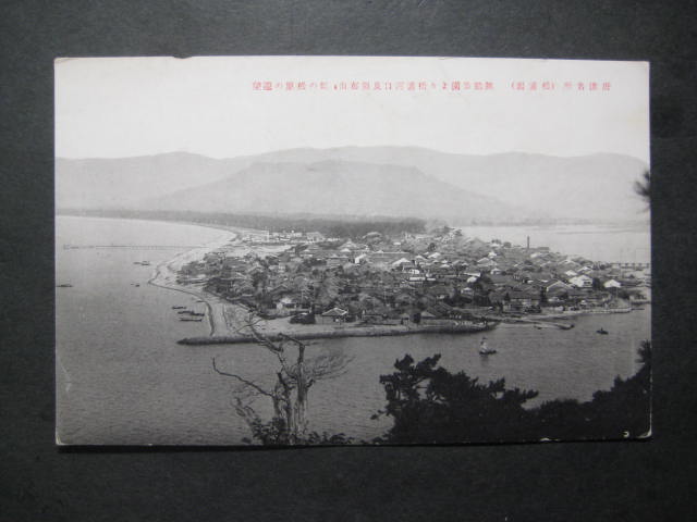 舞鶴公園より松浦川口及領布山、虹の松原の遠望絵葉書 唐津名所