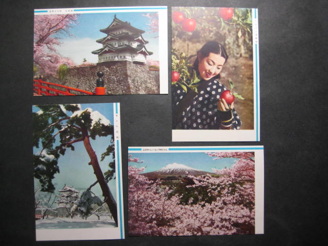 観光の弘前りんごと津軽娘と弘前城絵葉書他4枚