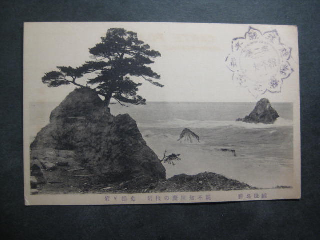 越後名勝親不知弁慶の投岩鬼操り岩絵葉書