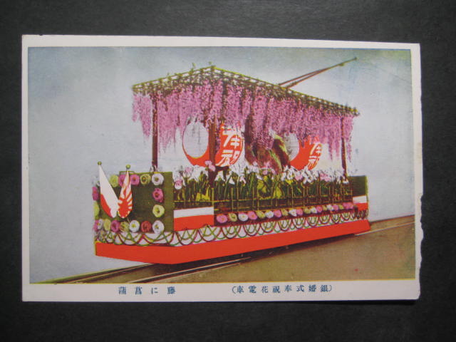 銀婚式奉祝花電車藤に菖蒲絵葉書