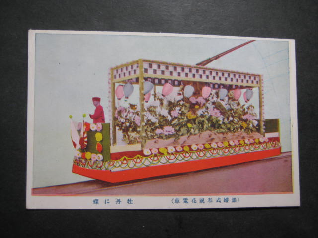 銀婚式奉祝花電車牡丹に蝶絵葉書