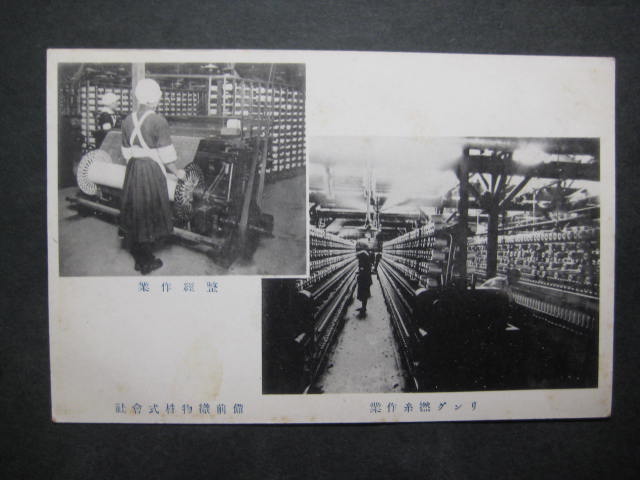 備前織物株式会社絵葉書整経作業リング撚糸作業