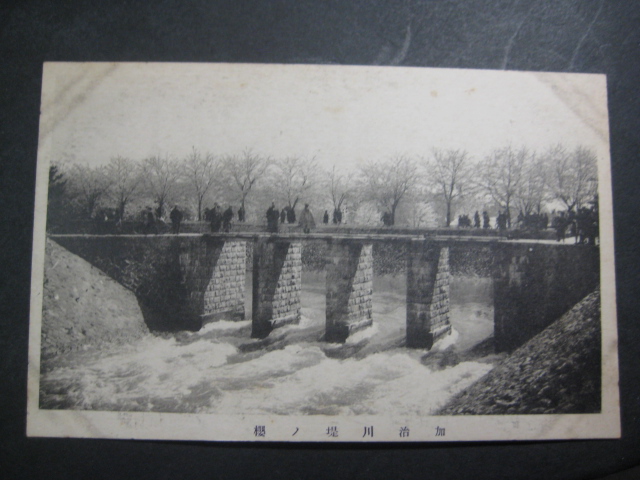 新潟県加治川堤の櫻絵葉書 橋