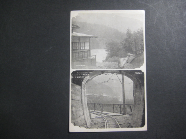 山行電車トンネルより見た宇奈月温泉と温泉郷の印象絵葉書