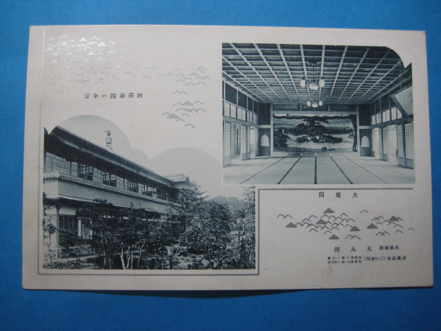 武蔵温泉内湯旅館大丸館大広間と別荘新館の全景絵葉書