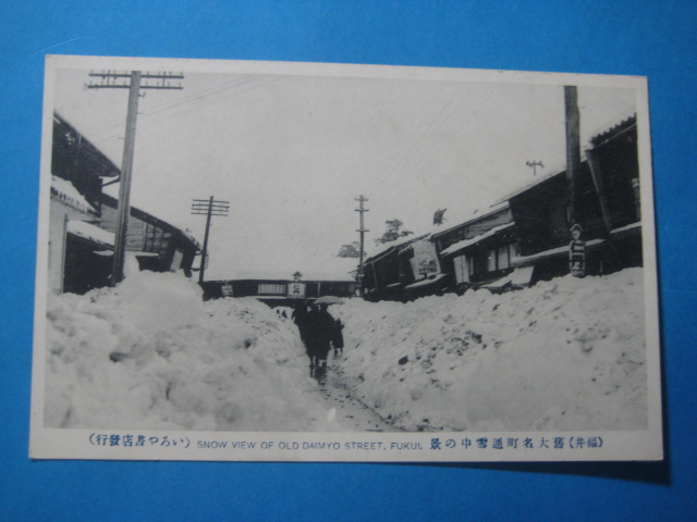 福井旧大名町通雪中の景絵葉書 仁丹看板