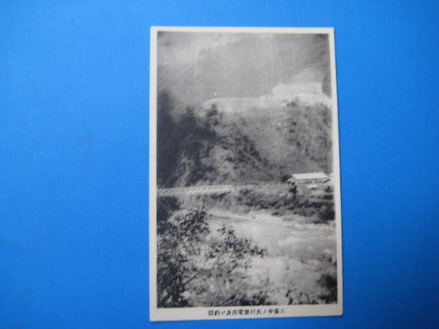 福島県会津工事中の大川発電所及び釣橋絵葉書